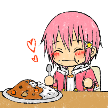 カレーうまうまな擬人化カービィ。