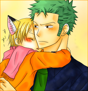 飼い主ゾロとペットの仔狐サンジ。